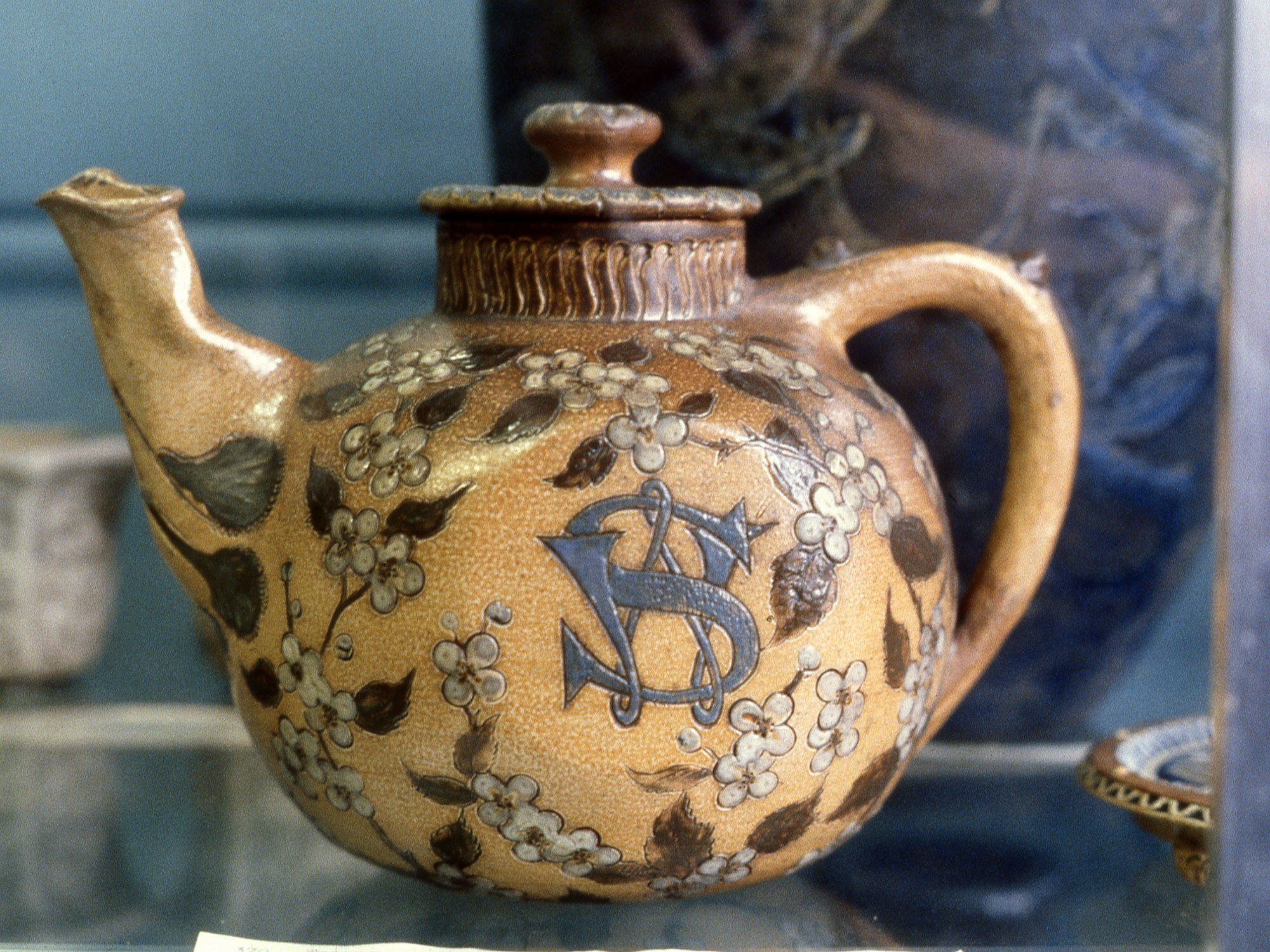 “Japonism” is the term for ceramics and furniture inspired by imported Japanese goods throughout the late 17th – 19th Century in the U.K and which inspired the Arts & Crafts Movement, along with Art Nouveau, with its characteristic basis in natural organic forms and elaborate surface decoration, seen here as cherry or orange blossom.